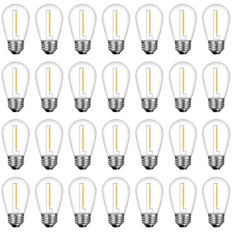 GvvooHome S14 Bulbs for Outdoor String Lights, 28 Pack Shatterproof LED Replacement Bulbs for Patio String Lights Outdoor Waterproof, E26 Base, Warm White 2200K, Dimmable