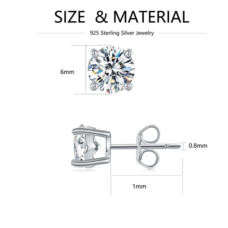 - Moissanite women's earrings size: the size of the moissanite stone 6 mm (1.7 ct/pair)