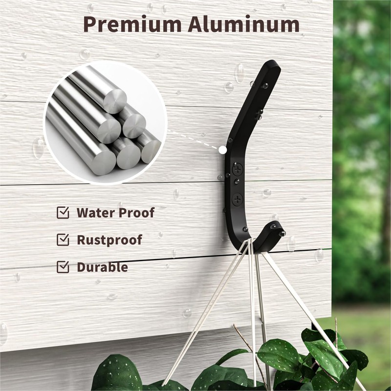 - Durable Material: Constructed from high-quality aluminum alloy with a sleek black paint finish, this hook is rust-resistant and waterproof; Tiny unpainted spots at drill holes are normal in production, but don't worry, they are invisible once installed