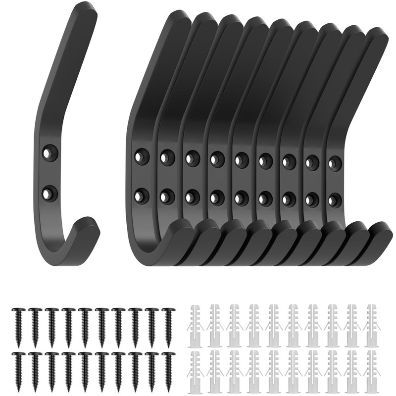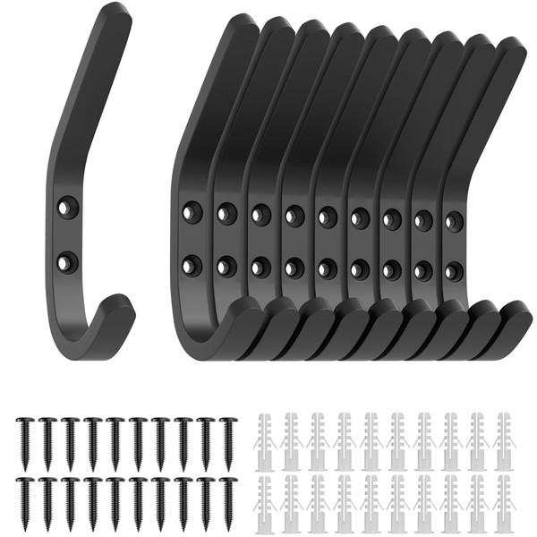 GWAAZXGZ Wall Hooks for Hanging Coat - Black Double Hooks with Max Weight Capacity of 50 LB, Suitable for Bathroom, Entryway and Closet, Coat Hooks Wall Mount, 10 Pack