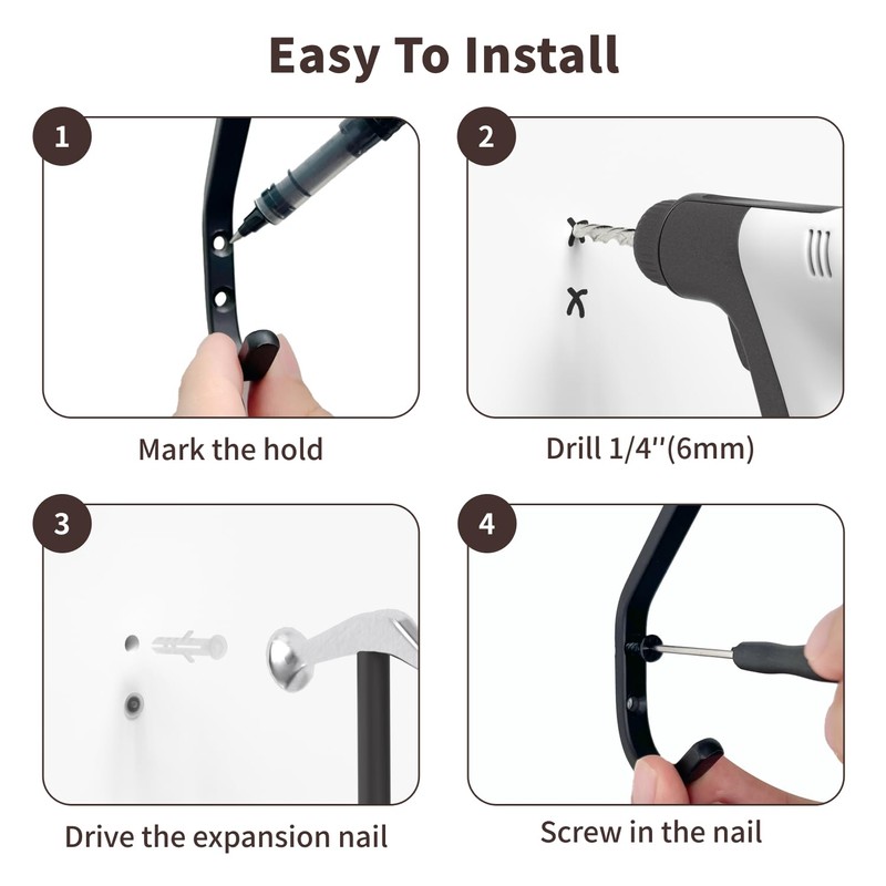 - Easy To Install: Quickly mount the hook with a simple drill, providing a secure hold on any surface; No more struggling with sticky adhesives