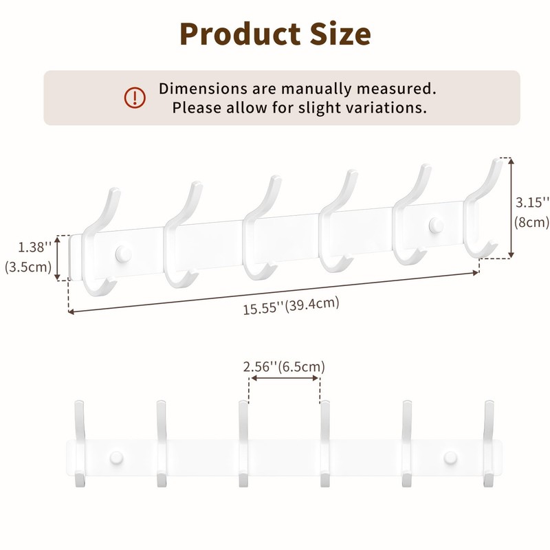 • Space-Saving: With 6 double hooks, this coat hook maximizes vertical space, keeping your accessories organized and within reach