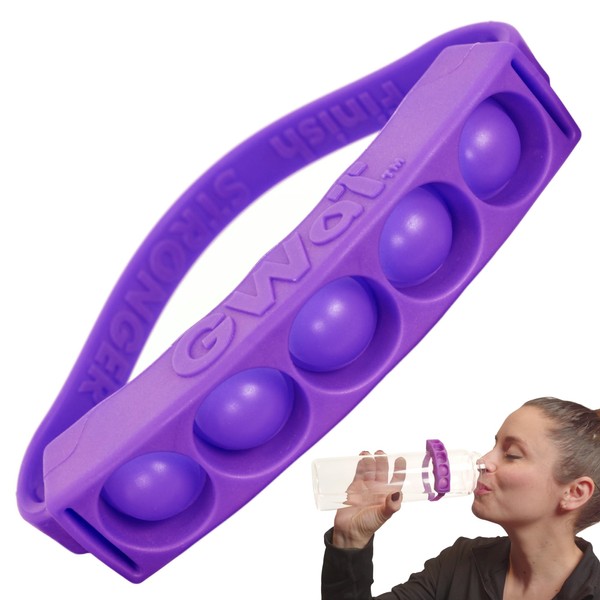 - FUN DESIGN: Fits your favorite water bottles, with fun poppers to pop your way to your hydration goal. Has the words “Start STRONG” embossed on one side of the band, and “Finish STRONGER” on the reverse side to keep you motivated.