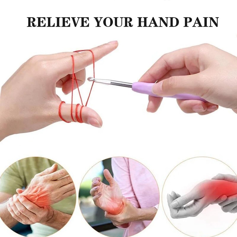 • ERGONOMIC RUBBER HANDLE The ergonomic design handle of crochet hook is covered with soft rubber, can reduce or eliminate hand, wrist or finger pain.