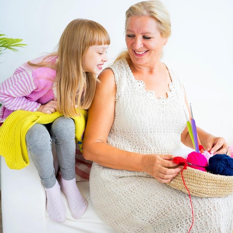 - ERGONOMIC RUBBER HANDLE The ergonomic design handle of crochet hook is covered with soft rubber, can reduce or eliminate hand, wrist or finger pain.