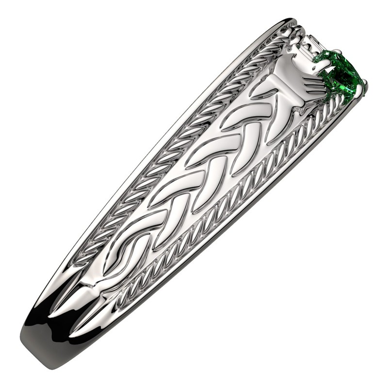 GWG Jewellery 925 Sterling Silver Claddagh Ring with Heart Shaped Emerald Green Stone, Hands, and Crown – 5 in Gift Box for Women