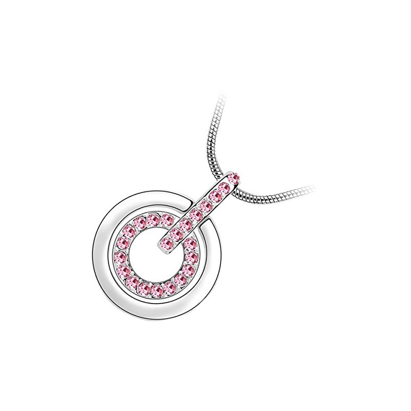 GWG Jewellery 925 Sterling Silver Coated Circle Graced with Sapphire Pink Crystals Inside of Ring Multilayer Design Pendant Necklace in Gift Box for Women
