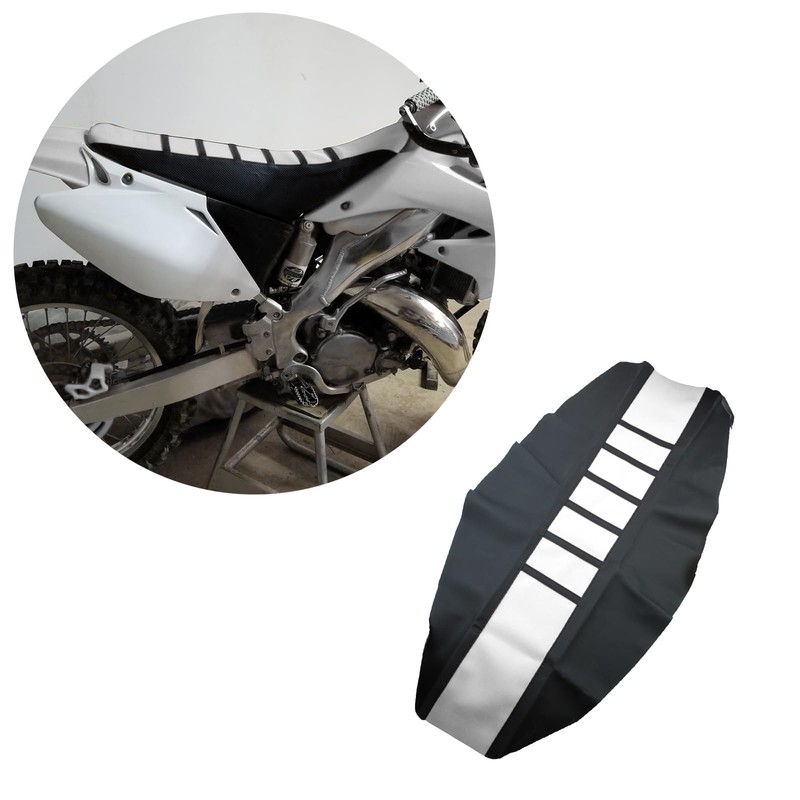 GWH Universal Motorcycle Seat Cover Non-Slip Suitable Rubber Striped Seat Covers Soft for YZ125 YZ250 YZ450F WR250F WR450F WR400F XTZ125 YZ WR TTR 125 250 Dirt Pit Bike Off Road Motorbike (White