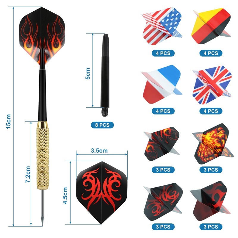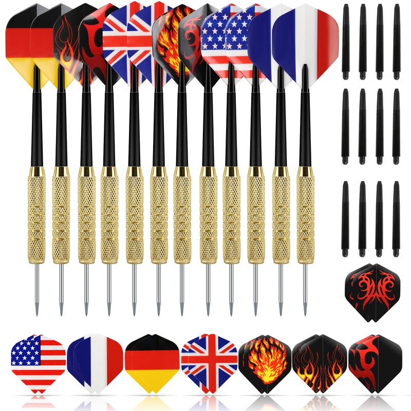- Great value with 12 pcs steel tip darts and extra 16 flights and 12 shafts included