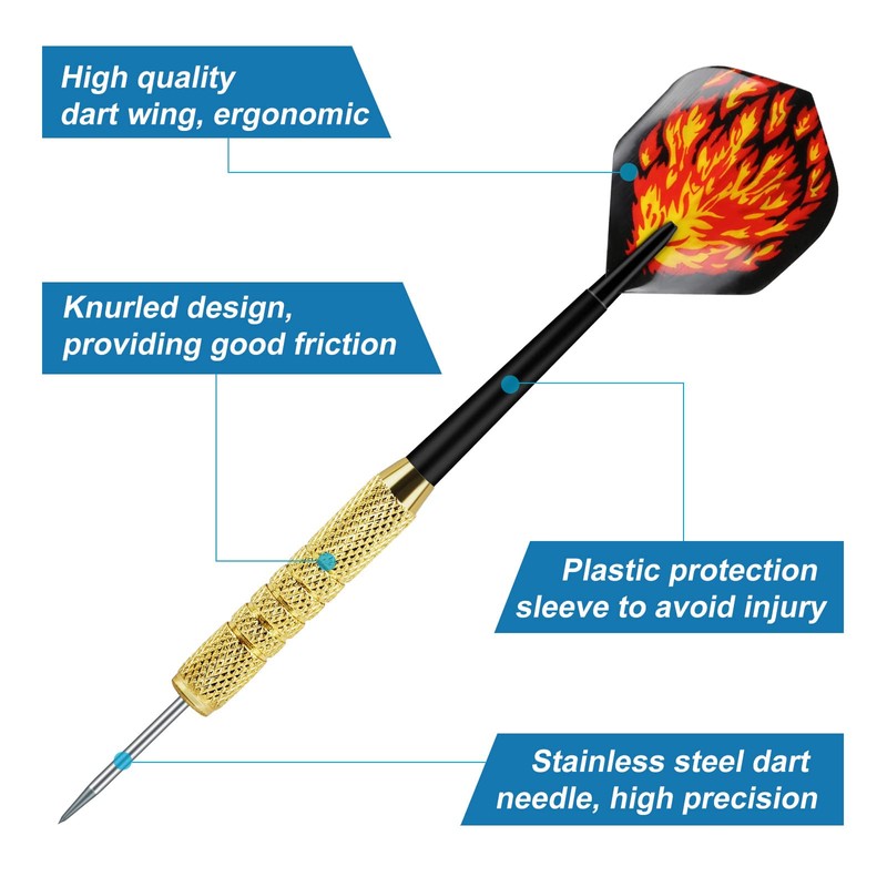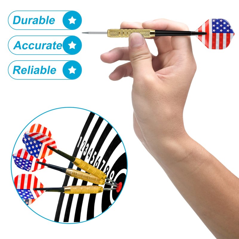 GWHOLE steel tip darts set is designed to give maximum performance right from the moment you hit the dartboard. With varying dart flight designs,it includes everything you need to have a classic head-to-head game.These darts are detachable, they are comprised of high quality stainless steel dart tips, brass barrels, pvc rods and flag flights. Great choice for beginner in darts sport or bar darts.We love the darts sport as much as you are, that's why we make this fantasic affordable steel tip darts for you!