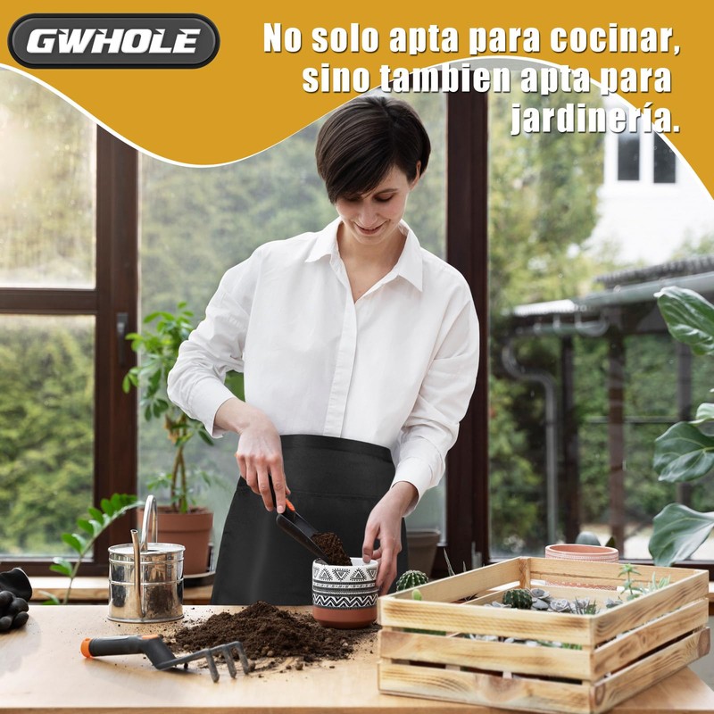 • 🥃Delantales Apta Varias Situaciones:Este delantal no solo puede usar para cocinar, sino que también apta para cutivar, pintar, limpiar etc.