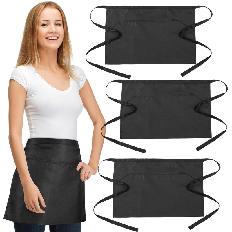 GWHOLE 3 piezas Delantales de Cintura Delantal Corto con 3 Bolsillos para Chef Mandil Mesero Corto para Camarero Restaurante Casa Panadero Artesano Bar Bartender, Negro