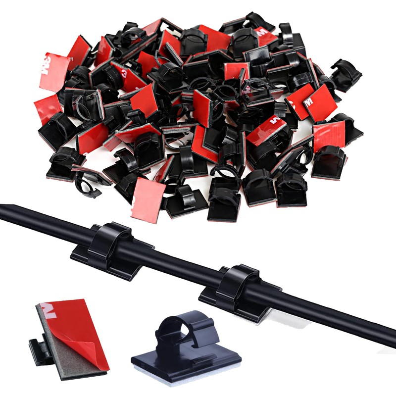 GWHOLE 100 pieces 3m adhesive cable drop cable clamp management clips wire cord tie holderAdhesive cable clamps:Drop cable clamp size is 15 x 20 mm; 100 pieces for one size, with black color. Cable clip organizer attaches to a smooth surface firmly and help keep your place neat and organized, free from annoyance of mess wires.Portable and lightweight:Desk cable clip made of plastic and adhesive, small and lightweight, easy for you to install the place you want.Common application:Adhesive cable clips can be applied to various cables such as computer cables, TV cables, Christmas lights cable and USB cables on most surface in home, office and car.Product Features:Size: 15 x20 mmColor: blackInstructions:1. Initially clean the area. (take time for preparation process)2. Peel off the sticker, paste it. (press for a few minutes and then it will be OK)3. Keep your wires organized.Note:Attach to the smooth surface.Avoid move it frequently.Package includes:100 x wire clips