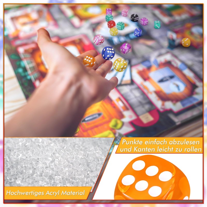 • Multifunctional dice set: The colourful cube set is ideal for playing. For example, Yathzee, Farkle, Casino or teaching math, also perfect for many occasions such as parties, Christmas, Halloween, weddings etc. to spend a cosy leisure time with friends and family, both for outdoor and indoor games.
