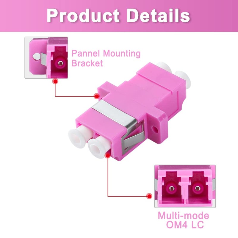 GwliUni 50Pcs LC to LC Multi-Mode Couplers OM3 OM4, Duplex Fiber Optical Adapters Cable Connectors with Panel Mounting Wing