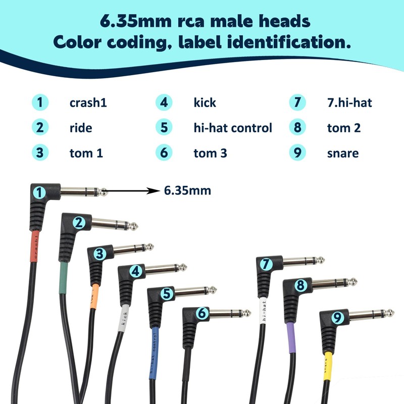 GWNOWZZET Cable Snake Harness for Alesis Drum Module Command Surge Nitro DM7X Forge 6.35mm RCA Male Heads
