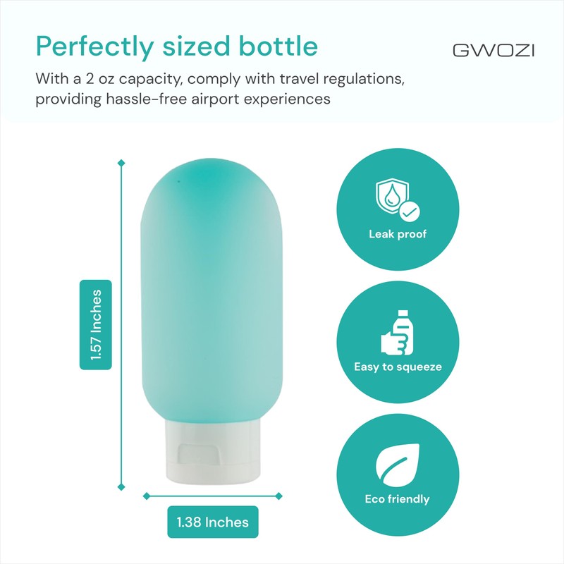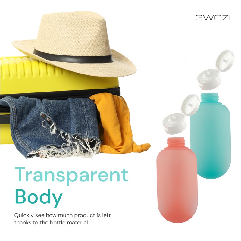 GWOZI Travel Bottles for Toiletries Kit - Travel Size Bottles 2 oz - Travel Shampoo Bottles 4 Pcs - Squeeze Small Travel Containers for Liquid, Conditioner & Shower Gel, Leak Proof, Plastic