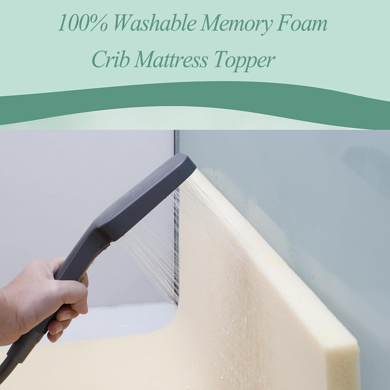 - 【Washable Memory Foam】:We use washable memory foam, mattress covers and pad can be washed directly in the washing machine, it is very convenient,and it is important for babies to have a clean mattress,because babies spend a lot of time in the mattress every day.(Suitable for babies over one year old.)