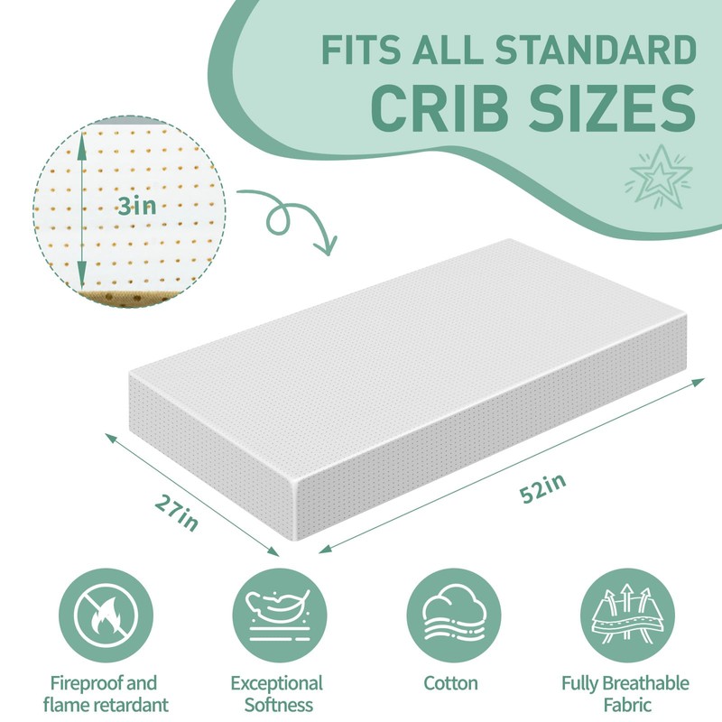 - 【Product Specs】:Fits any standard full-size crib and toddler bed,L (52 inches) x W (27 inches) x H (3 inches), not easy to dirty,washing machine safe,perfect for first-time parents.When you get it,you can wash it by washing machine first.