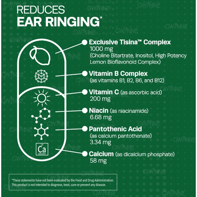 GWYNNE 1200mg Alivio del zumbido en los odos Suplemento con vitamina C Complejo BClnicamente probado para el zumbido en los odos Alivio del...