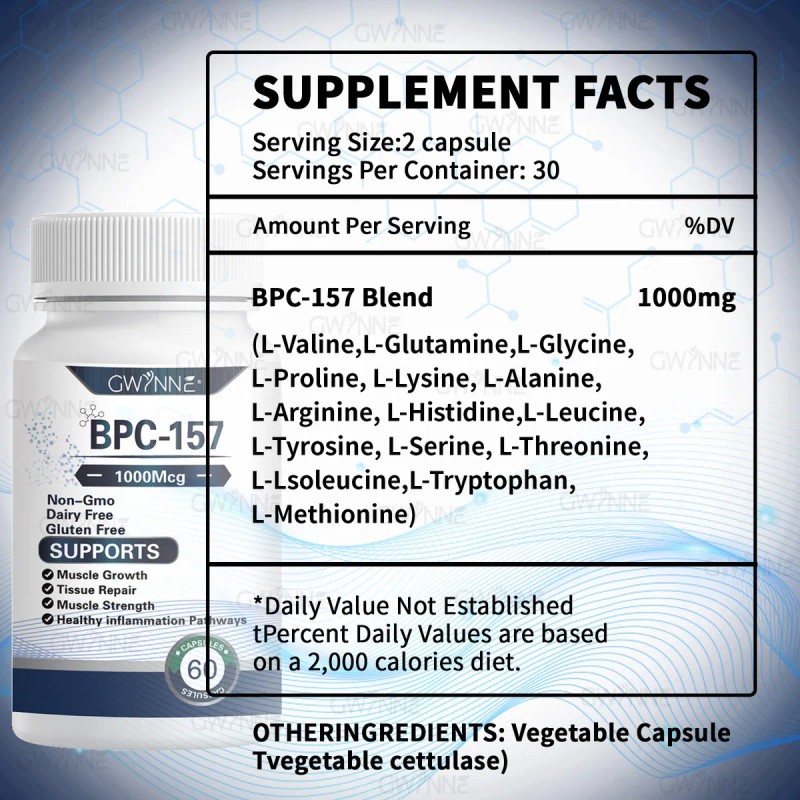 Gwynne Cápsulas De Péptidos Bpc-157 De Alta Potencia Para La Recuperación Muscular Y Del Ejercicio, Recuperación Acelerada Y Curación Intestinal 1000mcg 60 Cápsulas