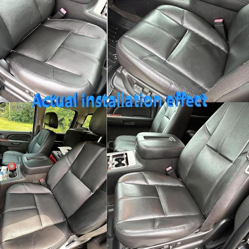 GXARTS Driver and Passenger Side Bottom and Top Lean Back Leather Seat Cover and Seat Foam Cushion Replacement fit for Chevy Silverado Tahoe Suburban Avalanche GMC Yukon Sierra 2007-2014 Black