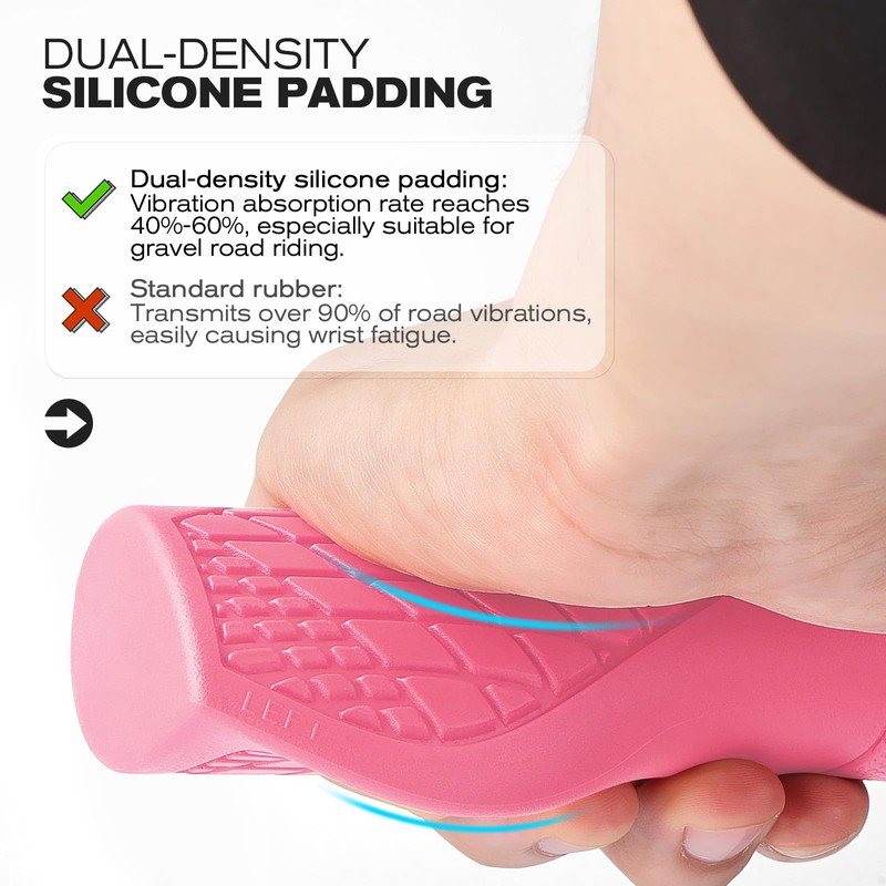 • 【Dual-Density Vibration Absorption】High-flex rubber + dual-layer silicone core bike handlebars absorb 40-60% gravel vibrations. Cloud-like cushioning keeps hands steady on rough terrain.