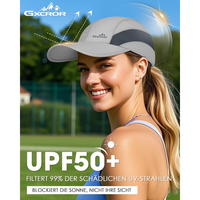 GXCROR Sports Cap for Men & Women, Ultralight Quick-Drying Baseball Cap with UPF50+ Breathable 3D Mesh Reflective Design, gray, Unit size