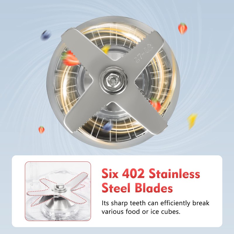- [Fine&Thorough Grinding] Our kitchen blender adopts spoiler technology, strengthened crystal column cyclone impact angle, center traction double cyclone, 2200W pure copper motor, which can reduce the grinding blind area and make the grinding finer.