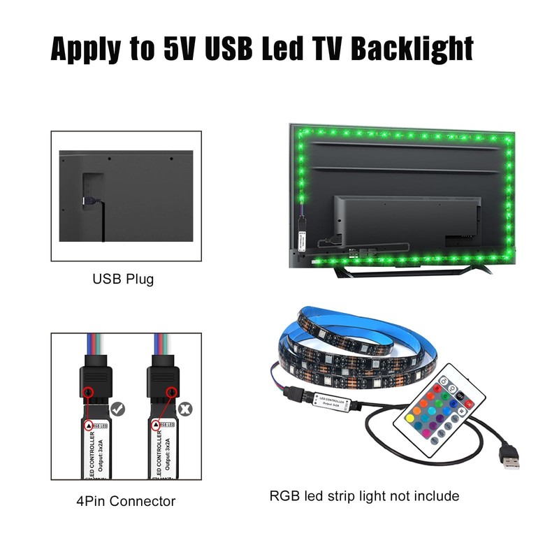 - Easy to Connect: Connect the light strip with the 4-pin plug on one end and plug the other end into 5v USB port to power it