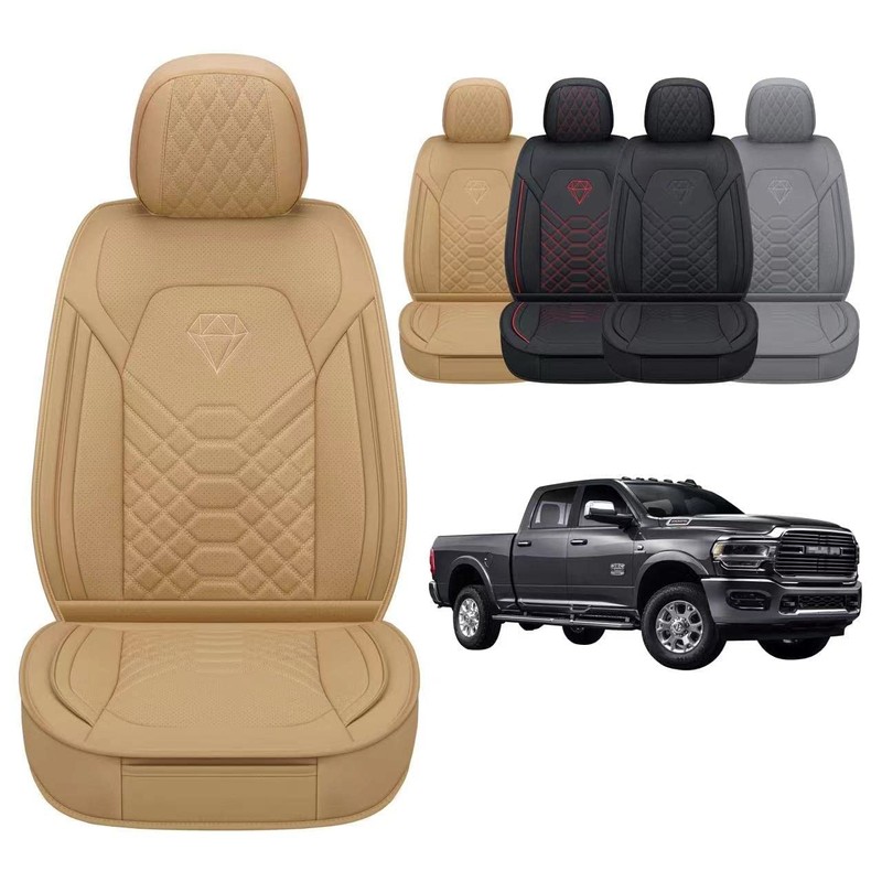 GXT Dodge RAM Front Seats Cover Fit for Select 2013-2021 Dodge RAM 1500 2500 3500 Pickup Truck, Waterproof Synthetic Leather Car Seat Cover and Cushion (Beige).