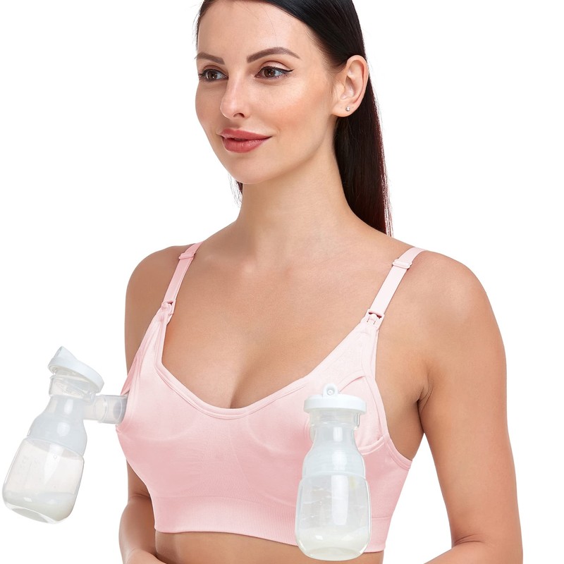 GXXGE Nursing Bra Support Pumping Bra Hands Free All in One Maternity Bra Comfortable Breast No Pad Pumps Bra, Pink, XX-Large