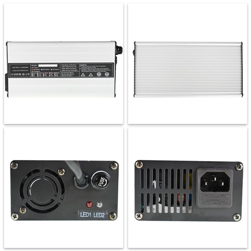 Features: Automatic charger with trickle charge mode. When charging, the cooling fan will continue to rotate until fully charged and will stop.