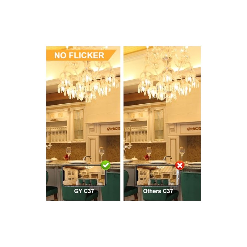 • Wide Use and Long LifeStandard E14 socket, easy to install, suitable for a wide range of fixtures.GY C37 E14 LED bulbs have an average life span of 25,000 hours, which effectively reduces the cost of bulb usage and overall cost.