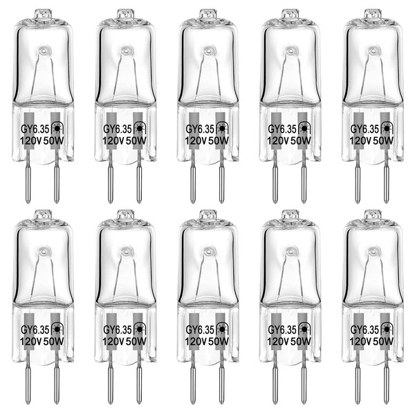 GY6.35 Light Bulbs, 120V 50W Crystal Clear Halogen Bulb 2 Pin, T4 JC Bi-Pin Base G6.35 Capsule Bulb, Dimmable 2700K Warm White 2 Prong Light Bulb for Pendant Light, Microwave Oven, Table Lamp, 10 Pack
