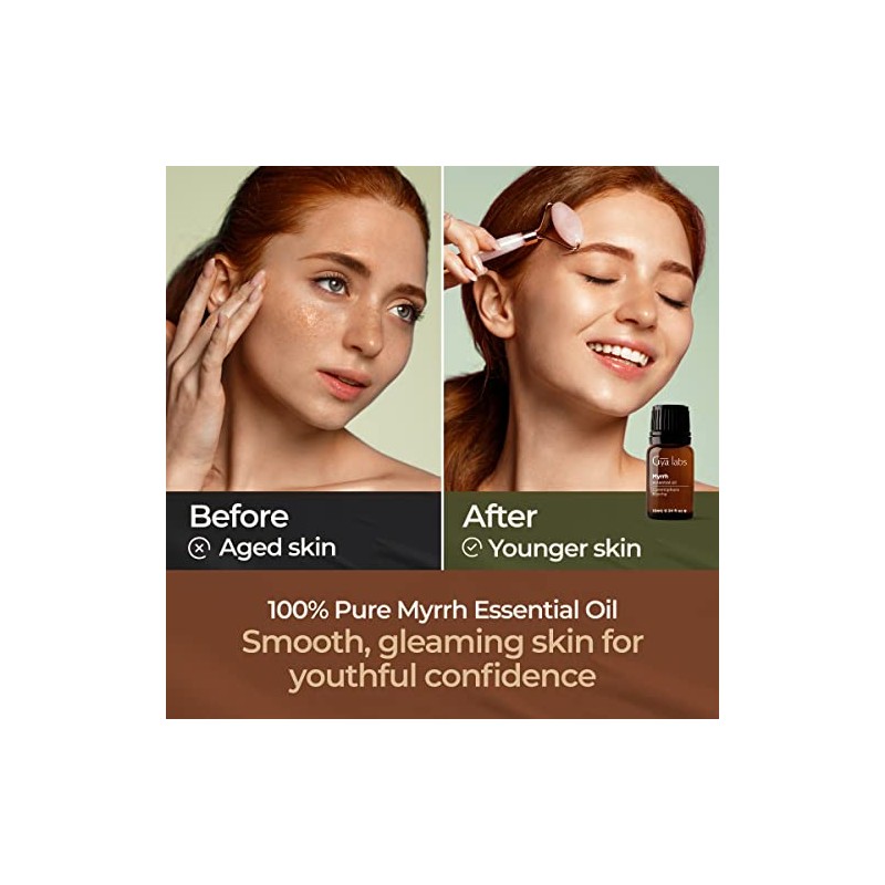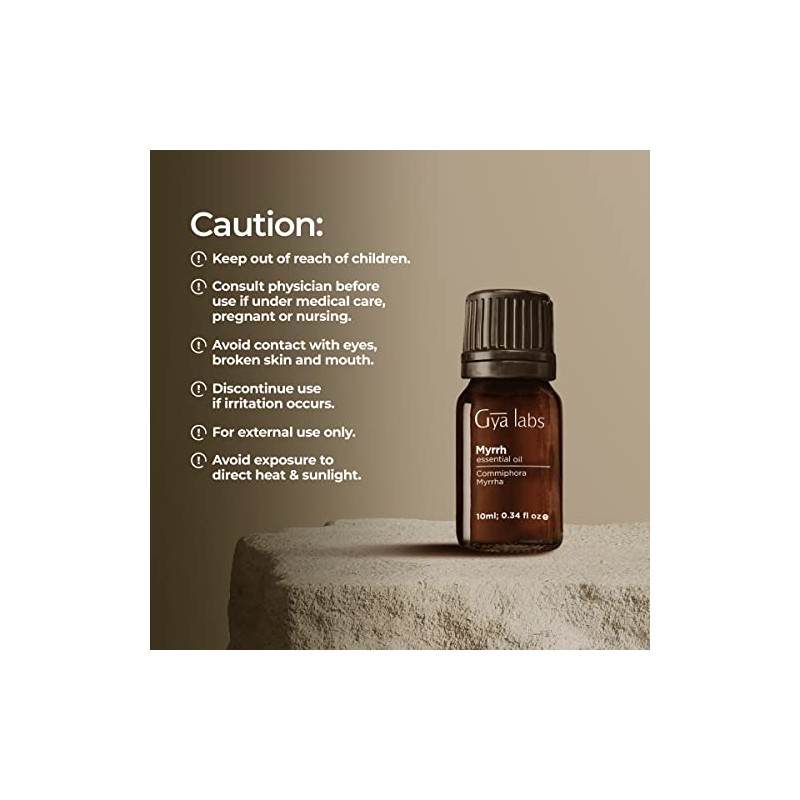 - OUR PURE MYRRH OIL is CRUELTY-FREE and QUALITY ASSURED for your ease of mind. Gya Labs myrrh essential oils have a earthy, woodsy and warm scent that’s rich with balsamic notes that carries well and does not overwhelm the senses. This makes it the perfect essential oil for use on skin or with a diffuser. Not to mention that it's highly affordable and therefore one of the best myrrh oils in the market.