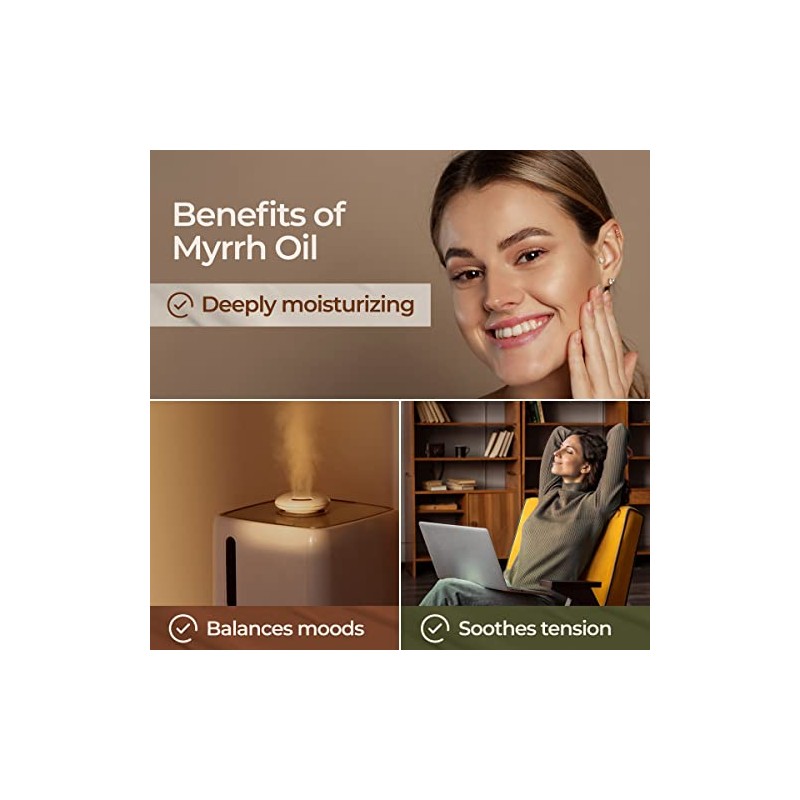- EMBRACE DEEP RELAXATION and STRESS RELIEF. Myrrh essential oil promotes relaxation and stress-relief to help you unwind after a stressful day. On top of its relaxing properties, you may also use soothing and calming myrrh essential oil for skin to restore the complexion to its fullest potential.