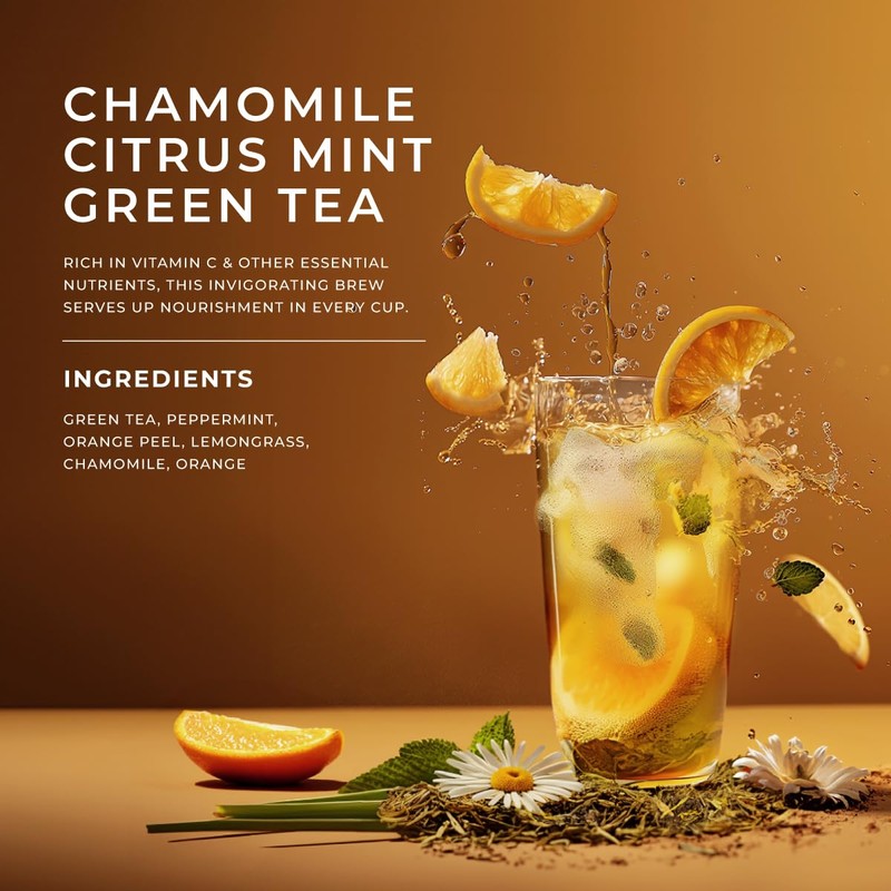 - IMMUNITY BOOSTER: Each cup serves as a health elixir, blending Green tea known for its antioxidants with the immunity-boosting benefits of citrus and chamomile, fortifying your body's defenses and promoting overall well-being.