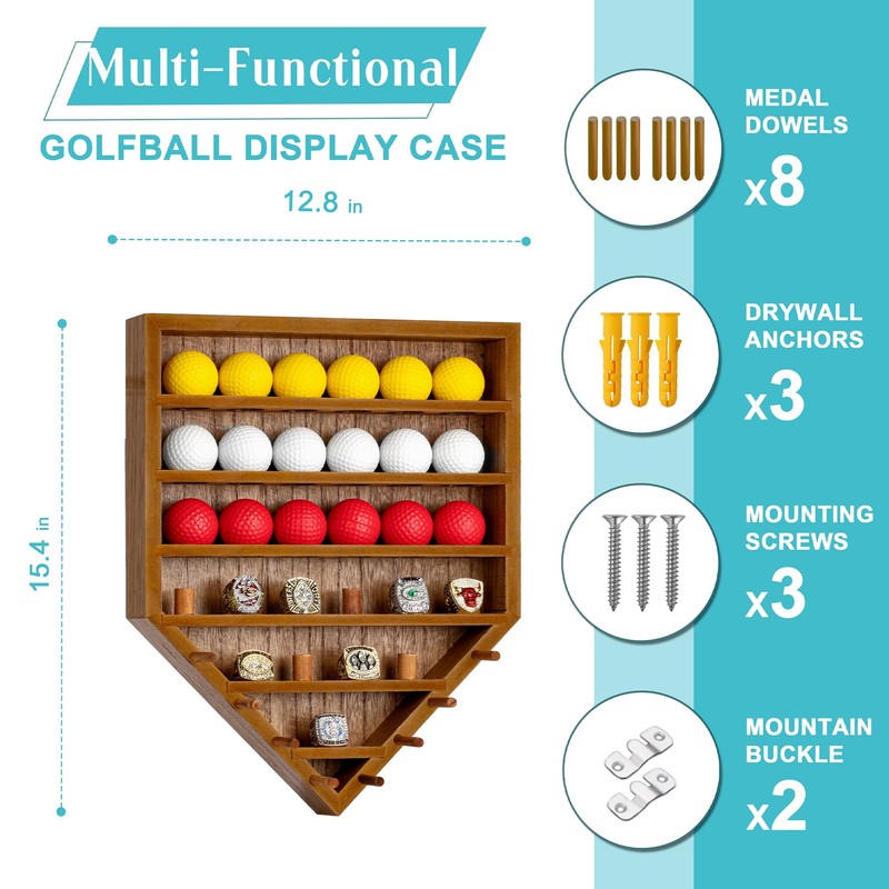 - [EXQUISITE DESIGN] - This holder for golfballs, rings, medals, trophies, comes with an exquisite pentagonal cabinet design, presenting a stunning visual display. Golfball storage box exterior design enhance texture