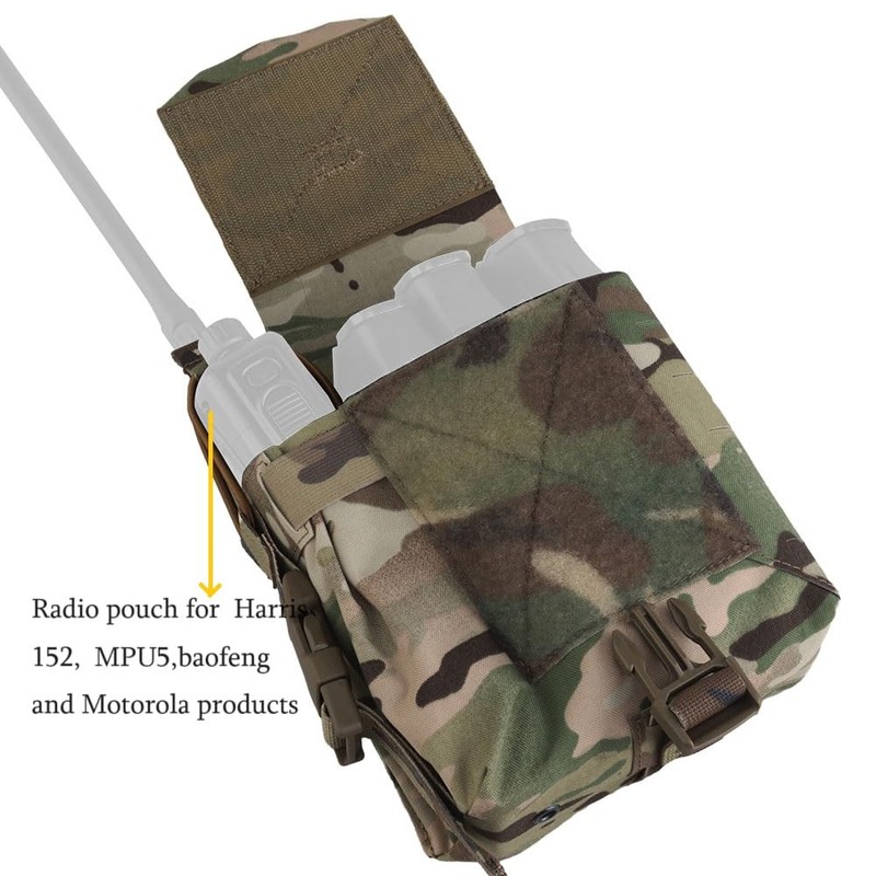 - The secondary compartment will securely hold a handheld radio unit via elastic retention loop and an adjustable shock cord retention lanyard. Radios like the Harris 152 and Persistent Systems MPU5 are compatible, as well as a whole range of other smaller handhelds like Baofeng and Motorola products. The retention lanyard can be adjusted for radio height