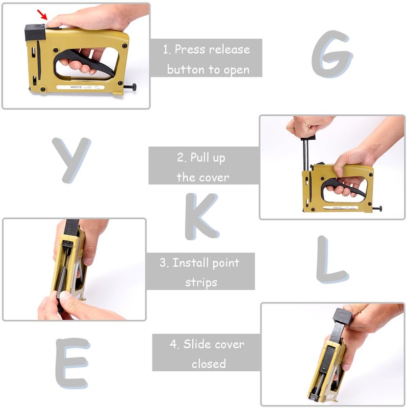 - 【Pragmatic】The picture frame stapler specializes in fixing photos and picture frames. It can also be used for other purposes, fixing other materials, decorating, repairing furniture, crate making, reinforcing doors and windows, restoring carpets, etc.