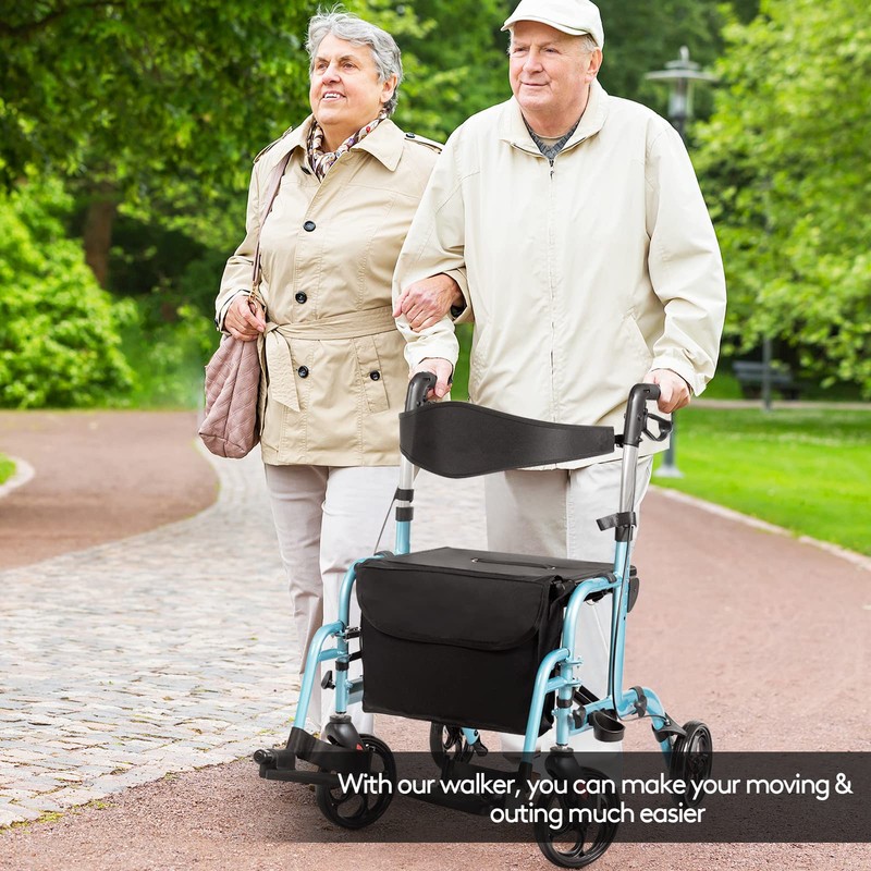 - 【2 in 1 Rollator Walker】This multipurpose walker not only assists walking, but works as a premium wheelchair, offering a stable and safe seat when needed. Simply reversing the backrest and changing its direction, you can switch the rollator between auxiliary walker or wheelchair.