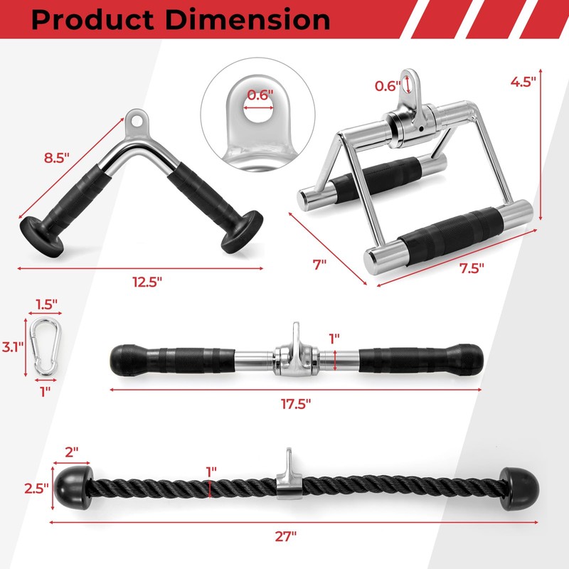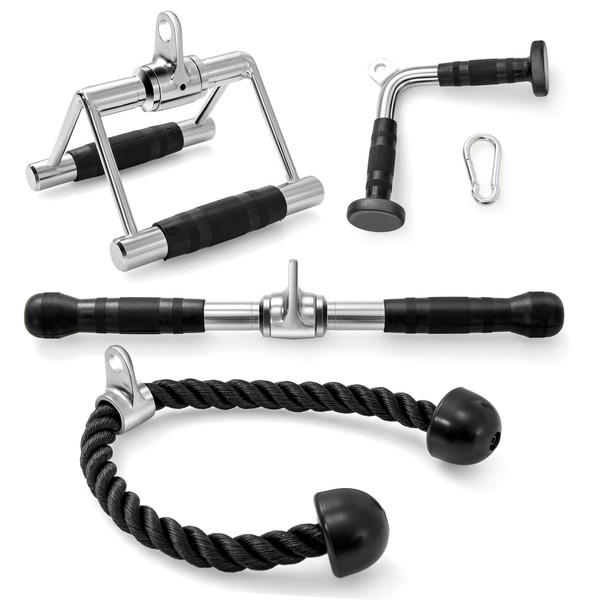 - 【Machine Attachment Set】 Including a double D handle, a V-shaped handle, and a triceps rope, this cable machine attachment set will enhance your workout routine.