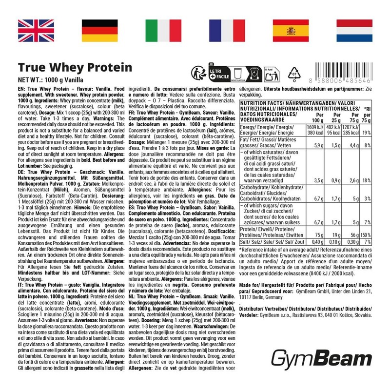 GymBeam GymBeam True Whey Protein Pulver - Molkenproteinkonzentrat (WPC), Whey Protein, schonende Filtration, hohe Biologische Wertigkeit, essentielle Aminos?uren, BCAAs (1000 g, Vanille)