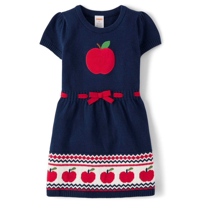 • FEATURES: Contrast ribbon waistband with non-functional bow, embroidered apple