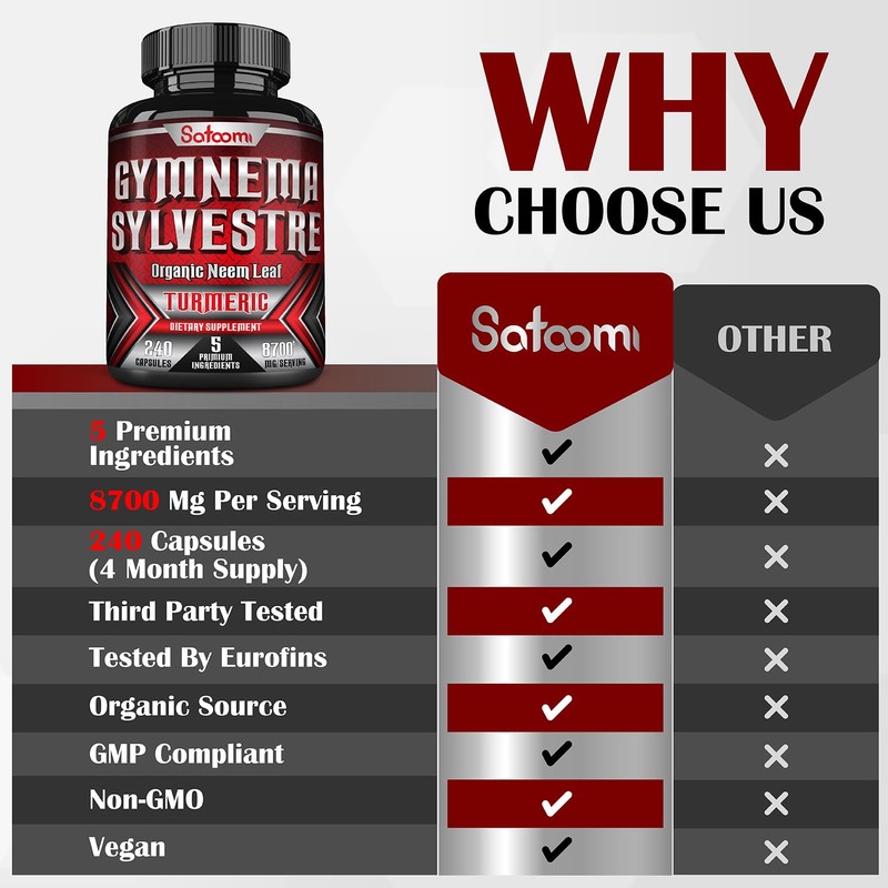 - Ultra Formula: 4 powerful ingredients including Gymnema Sylvestre, Turmeric Curcumin, Organic Neem Leaf, and Black Pepper without discomfort or side effects for both Men & Women!