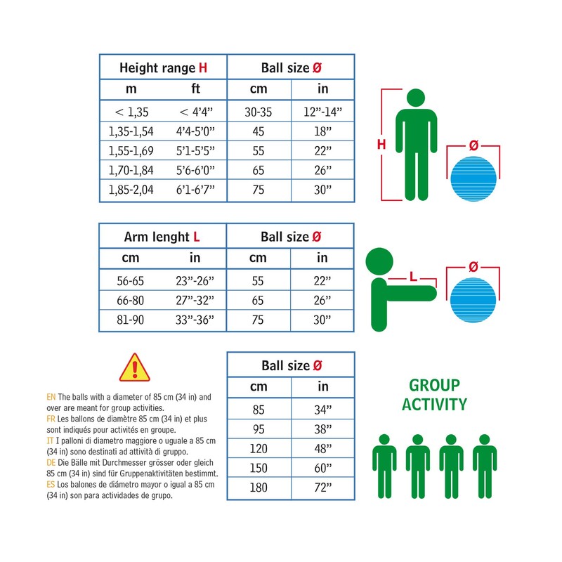 - Available in 3 sizes: 55 cm (recommended for users 5' 1" to 5' 7"), 65 cm (recommended for users 5' 8" to 6' 2"), 75 cm (recommended for users 6' 3" and taller)