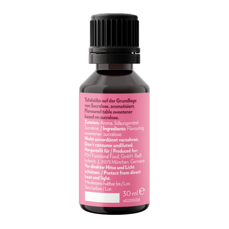 - Easy dispensing: As desired for drinks or shakes, simply add 5–8 drops per 250 ml, in yoghurt and quark 7–10 drops per 300 g. When cooking and baking, we recommend 12–15 drops for a mass of 300 g.