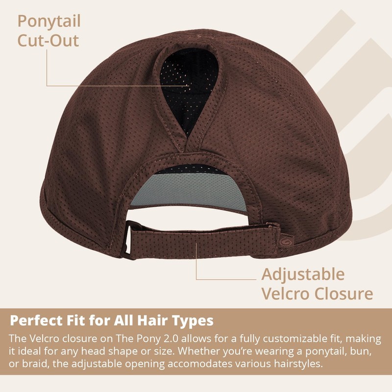 - One Size Fits Most: Our ponytail hat is designed with an adjustable Velcro closure to ensure a perfect fit for any head size or shape. This adjustable cap supports a variety of hair textures—straight, wavy, and curly—and styles such as ponytails, buns, locs, and braids. Perfect for securing your hair during any activity, the Pony 2.0 provides a stylish, comfortable fit for every woman, enhancing her active lifestyle with ease.