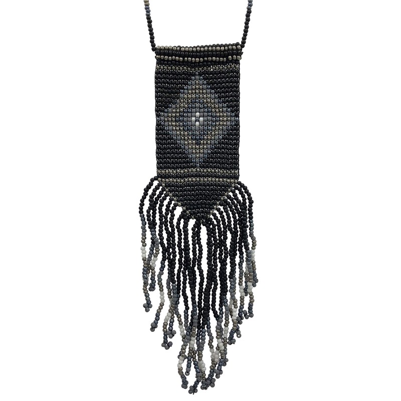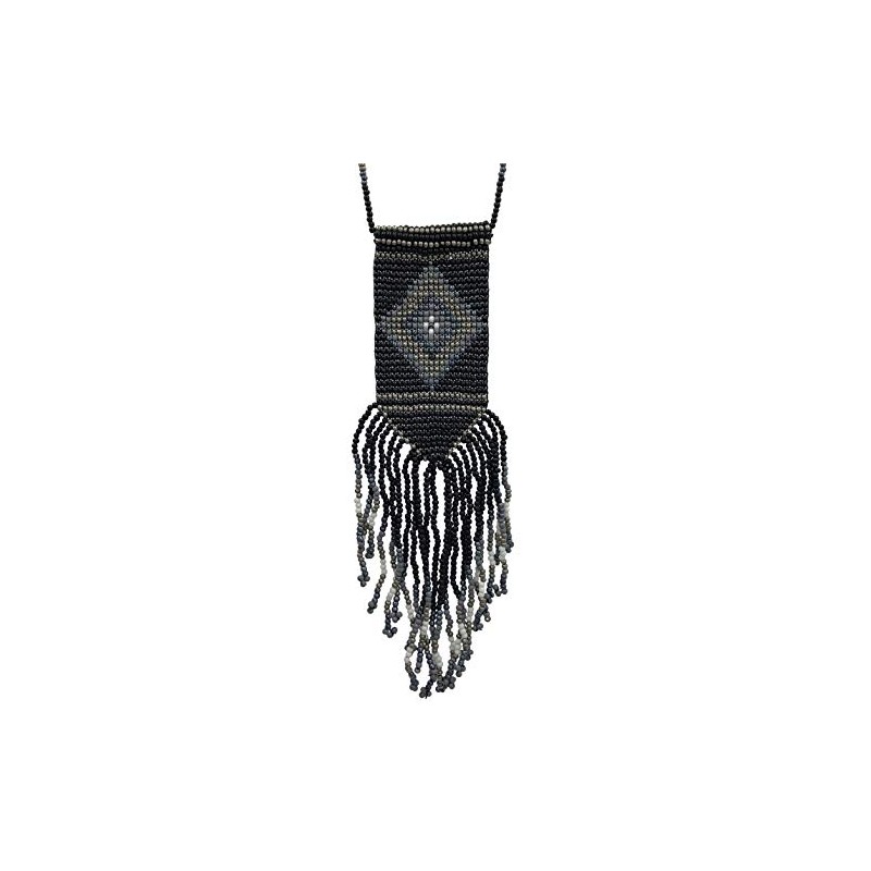 Gypsy Jewels Long Tribal Southwest Native Style Tassel Fringe Multi Color Seed Bead Statement Necklace (Black)
